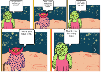 V této výukové aktivitě se žáci seznámí s jednoduchou aplikací na tvorbu komiksu, aplikaci využijí k vytvoření krátkého komiksu v angličtině a procvičí si anglické modální sloveso can. Naučí se také sdílet svou práci pomocí odkazu zaslaného e-mailem.