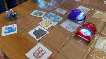 Robot jménem Ozobot má velikost přibližně pingpongového míčku a dokáže se pohybovat po nakreslených černých čarách. V případě, že zaznamená při své jízdě přerušení černé čáry specifickou barevnou kombinací (modré, zelené, červené čtverečky), dokáže si je přečíst a vyvodit z nich konkrétní povel (zatoč doleva, otoč se o 180° atp.). Dostali jsme předtištěné zadání – papír a na něm černě vyznačenou trasu s několika bílými místy pro možnost zakreslení barevné kombinace, tedy povelu. Po trase byly rozmístěny obrázky zeleniny (cibule, mrkev, hrách, rajče). My jsme měli za úkol navrhnout cestu tak, aby je Ozobot sesbíral v pořadí, v jakém se sklízí. To už bylo mnohem náročnější. Jestliže jedna cesta nesla povel o zatočení konkrétním směrem, měla ho tam „napevno“ a už se tou cestou zkrátka jinak pohybovat nedalo. Nakonec jsme zjistili, že zadání zřejmě nemá funkční řešení. Nezbylo nám už tolik času, tak jsme si to alespoň vyzkoušeli s jakýmkoliv vlastním řešením. Prodám rajčata za odvoz, značka: spěchá!
