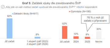 Zatímco na gymnáziích jde o již zautomatizovaný nástroj pro více než 75 % vedoucích pracovníků, na základních školách AI využívá jen necelá polovina, tedy 48 % účastníků šetření. Na středních školách s ní pracuje 68 % ředitelů a jejich zástupců, 2/3 z nich s ní dokonce pracují i ve volném čase.